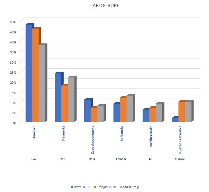 - Haplogrupa I2a je najzastupljenija kod svih zapadnobalkanskih naroda: Bošnjaka, Hrvata i Srba.